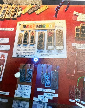 当店ではネックレスやキーホルダーにもなる名入れのステンレス札を製作しております。
